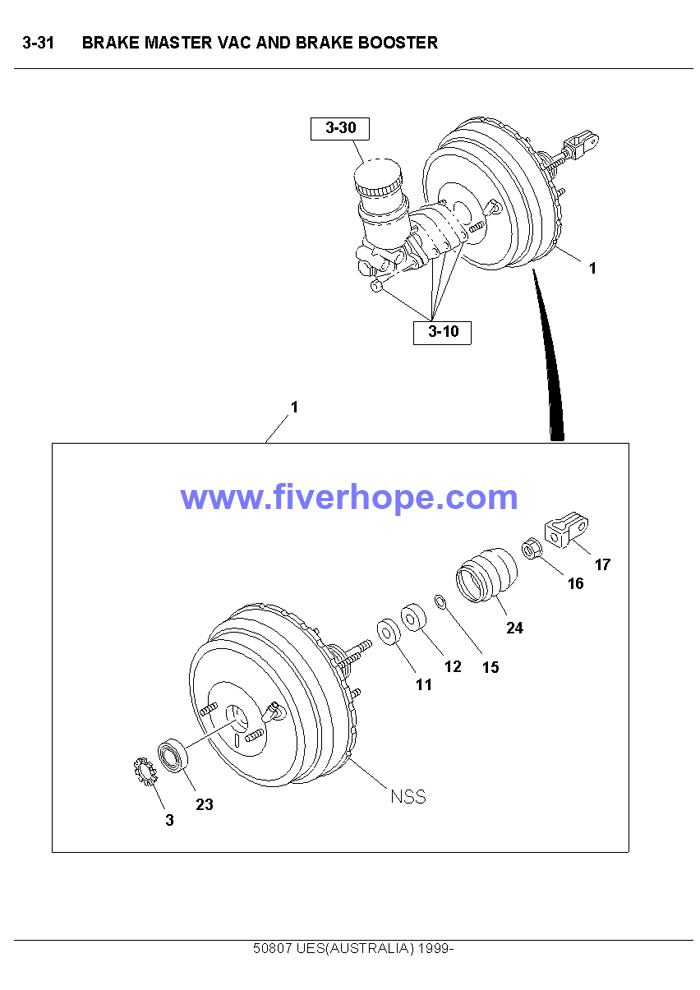 MASTER VAC ASM; BRK OE# Years Engine 8-97137-021-0 9811-0003 USA /AUSTRALIA UES 5VC/UES 5VF 8-97255-741-0 0004-0012 USA /AUSTRALIA UES 5VC/UES 5VF 8-97255-741-0 0101-0108 USA /AUSTRALIA UES 5VF 8-97288-244-1 0109- USA /AUSTRALIA UES 5VF